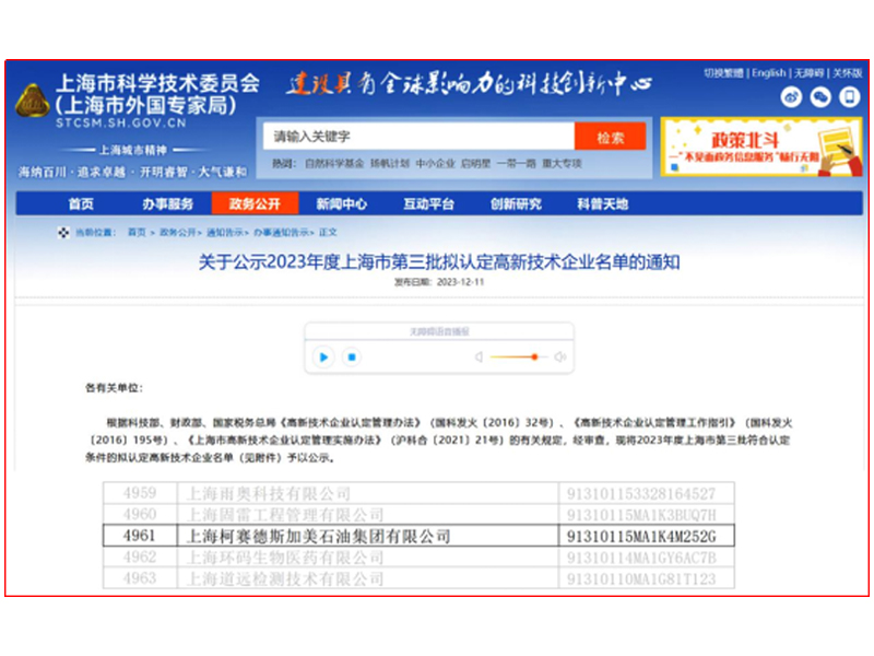日前,上海市科學(xué)技術(shù)委員會(huì)(上海市外國(guó)專家局)官方網(wǎng)站發(fā)布信息,公示了《2023年度上海市第三批擬認(rèn)定高新技術(shù)企業(yè)名單的通知》。該信息強(qiáng)調(diào):根據(jù)科技部、財(cái)政部、國(guó)家稅務(wù)總局《高新技術(shù)企業(yè)認(rèn)定管理辦法》(國(guó)科發(fā)火〔2016〕32號(hào))、《高新技術(shù)企業(yè)認(rèn)定管理工作指引》(國(guó)科發(fā)火〔2016〕195號(hào))、《上海市高新技術(shù)企業(yè)認(rèn)定管理實(shí)施辦法》(滬科合〔2021〕21號(hào))的有關(guān)規(guī)定,經(jīng)審查,現(xiàn)將2023年度上海市第三批符合認(rèn)定條件的擬認(rèn)定高新技術(shù)企業(yè)名單(見附件)予以公示。